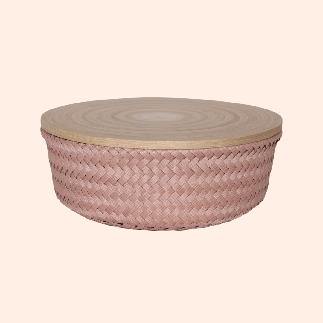 Opbergmandje met bamboe deksel - Copper Blush - large