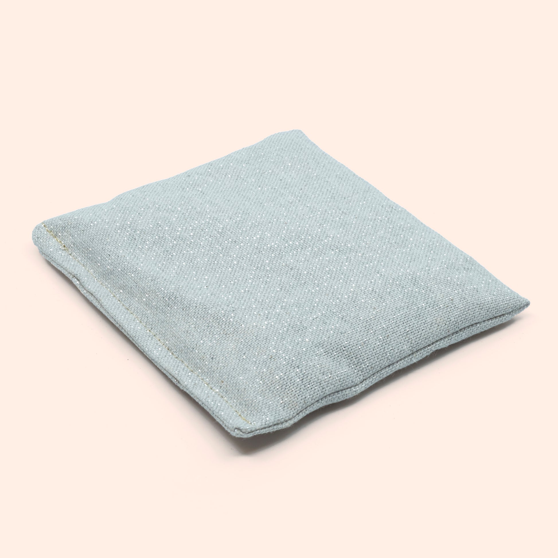 De sensorische pittenzakjes bieden we aan in verschillende texturen. Dit katoen grijze pittenzakje heeft een mooi glitterdraad erin verweven.