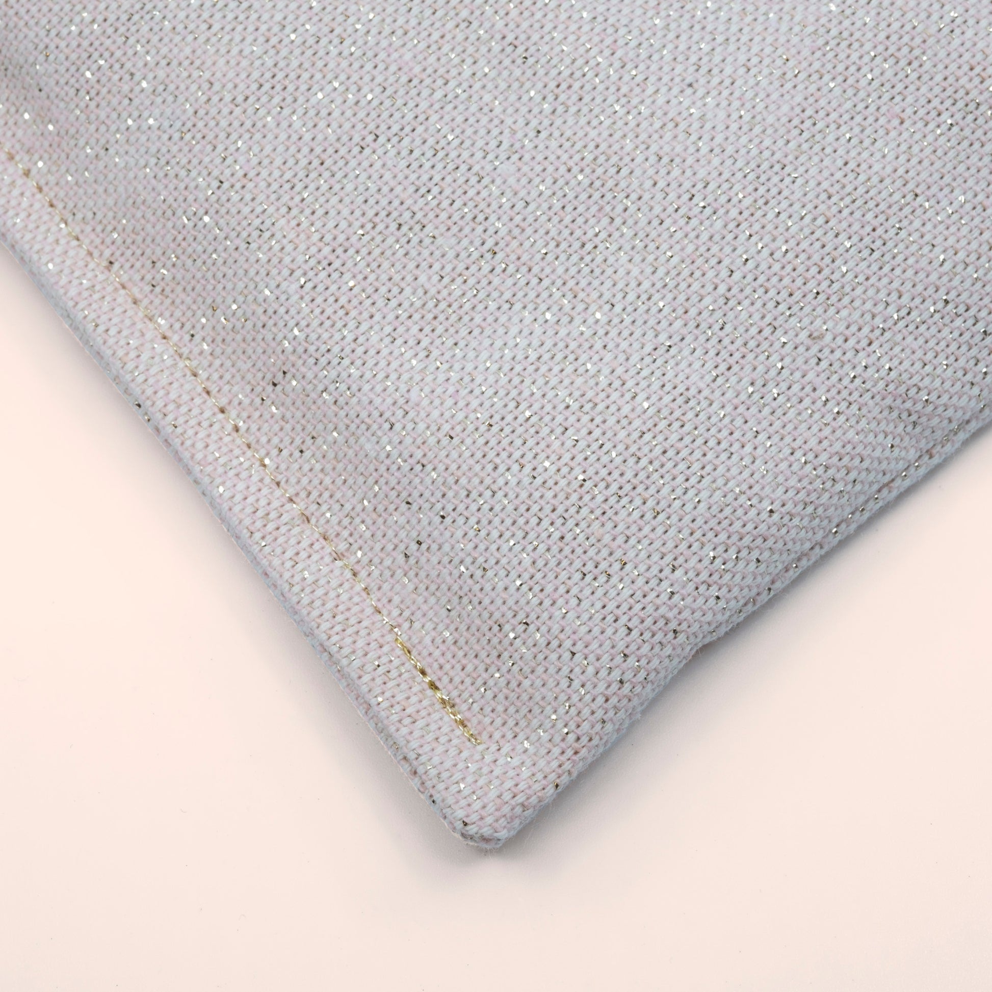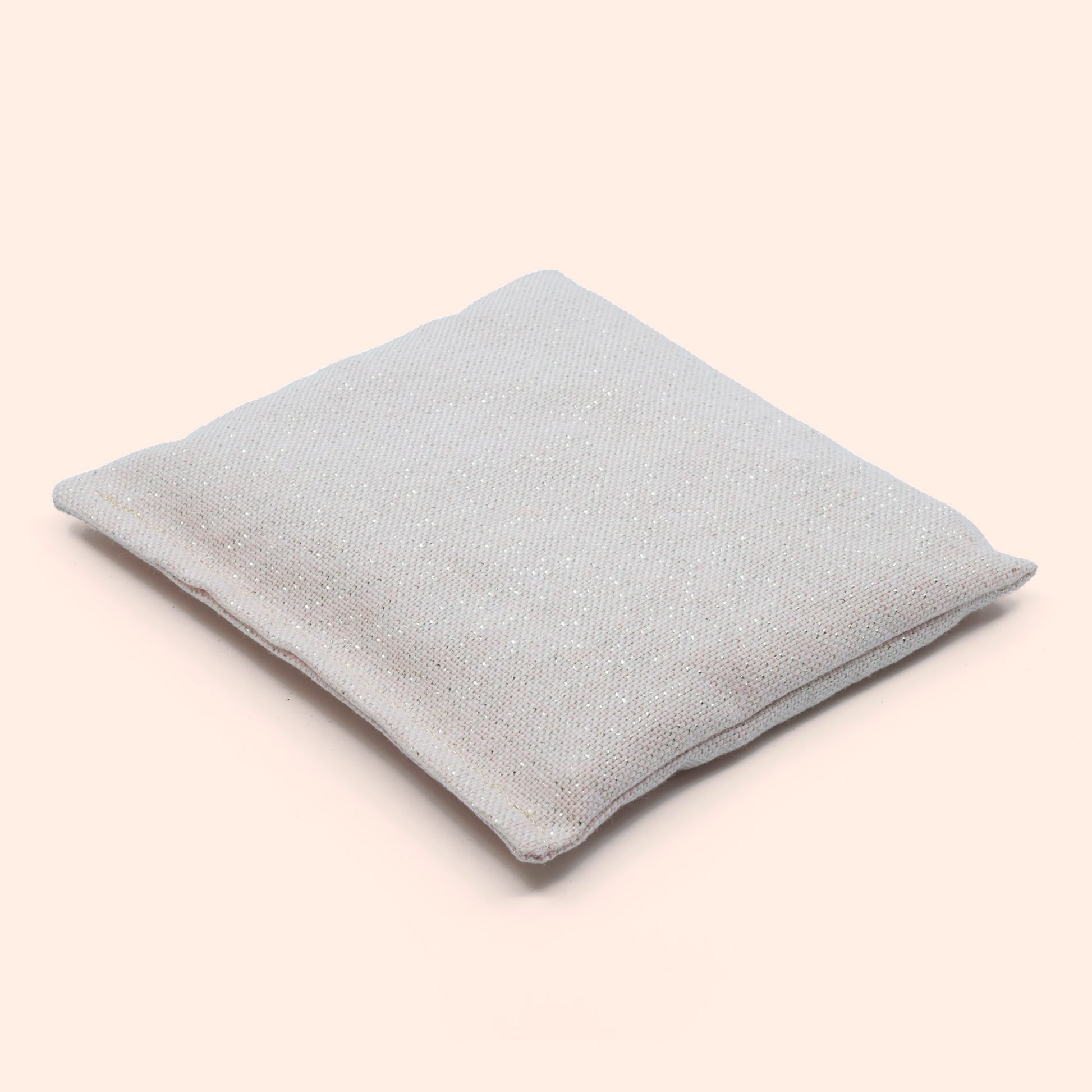 De sensorische pittenzakjes bieden we aan in verschillende texturen. Dit katoen roze pittenzakje heeft een mooi glitterdraad erin verweven.